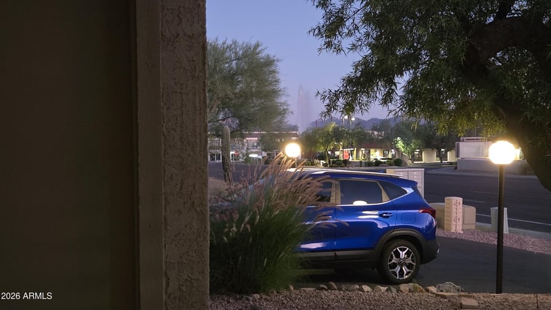 Listing details for 16616 Palisades Blvd #109, Fountain Hills, AZ 85268 : Centrally located to downtown restaurants, stores, and groceries with a view of the world's tallest lake fountain! 1,766 square feet! Huge! 2 MASTER BEDROOMS + DEN, 2.75 BATHS, and a 1 car GARAGE w built-in cabinets. 36in doors. Updated w granite countertops in kitchen and baths, cabinetry w/ soft close, slate backsplash, recessed lights, toilets, tub, and huge custom stone shower. Large closets and dual outdoor covered balconies with sunset and pool views. HOA covers exterior, landscaping, and trash. Beautifully landscaped exterior w/ flowers galore! Fountain Hills is upscale and growing with events like the 4th of july fireworks, annual free car show, ballet, hiking, astronomy center and so much more.