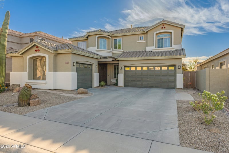 Listing details for 16629 27th Ln, Phoenix, AZ 85045 : This amazing 4 bedroom 3.5 bath residence tucked behind South Mountain in the Foothills Reserve features extensive improvements throughout. Upgrades to the kitchen feature high/low cabinets, multiple pan drawers, under cabinet lighting and soft-close drawers. Crown molding frames the kitchen, family room, master bedroom and bathroom suite as well as the downstairs guest bedroom. The primary suite includes crown molding, large tub, renovated standalone shower, dual vanity, upgraded plumbing fixtures, lighting, flooring and new toilets throughout. Both guest bathrooms have been updated to include new countertops, new vanity finish. The entire home interior features new paint throughout, wood flooring in multiple rooms, a gas fireplace, custom office built-in cabinets & large upstairs loft with upgraded oak railing. Additional highlights include a newly renovate 2 car garage with ceiling access door and a single car hobby garage that features a high-lift garage door, car lift, and drop down access ladder. Extra insulation in the ceiling and walls work to keep the work space cooler. Built in 2003, the home was placed father forward on the lot, giving homeowners more backyard space to enjoy. Stone pavers, and extended patio and large aftermarket pergolas front and back help keep the house cool and provide more livable backyard space. The privacy of backing up to a protected desert wash gives owners a more open, resort-style feel. Energy-saving changes include upgraded window, Weaver Quality wood shutters, additional spray foam insulation, gas water heater, newer variable-speed AC units in 2022 and upgraded kitchen appliances (GE Profile, LG ThinQ and Bosch. Close to trailheads, restaurants, shopping schools, this is one you don't want to miss.