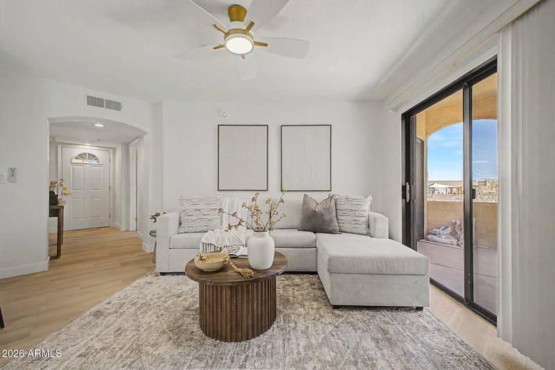 Listing details for 16631 El Lago Blvd #105, Fountain Hills, AZ 85268 : Welcome home! This adorable ground-level end unit features open living and dining, with wood-look flooring, plenty of natural light pouring in, and stylish neutral tones. Whip up feasts and quick bites in the pristine kitchen, displaying ample white cabinets, quartz countertops, and stainless steel appliances. Enjoy a good night's sleep in the main retreat, offering a practical walk-in closet for effortless organization, a bathroom with dual sinks, and sliding doors to the covered patio, where you can sip your morning coffee in peace. Don't forget to visit the community's pool, spa, workout facility, and clubhouse for fun times! Conveniently close to golfing, restaurants, and shopping! Don't miss it!