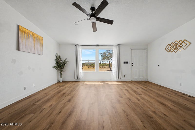 The main home has been updated with brand new flooring, all new light fixtures, new baseboards, and fresh door trim throughout the main house. Functional split floorplan with a private primary suite featuring a large bathroom with soaking tub and separate shower. Bonus features include a detached guest house with potential for a 1 bed, 1 bath guest suite or Airbnb opportunity, plus a tack room/workshop in the back of the property. Covered RV area that can also be used as a hay barn or additional livestock pen.