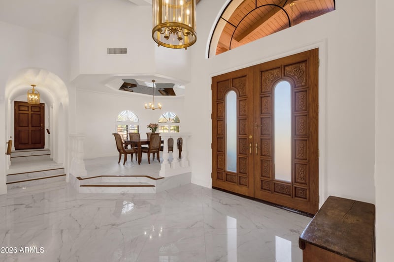 Listing details for 16653 Jacklin Dr, Fountain Hills, AZ 85268 : Set on one of Fountain Hills' most coveted golf course streets, this extensively reimagined single-level residence blends refined design with effortless desert living. Positioned on a premier golf course lot with expansive views of the surrounding mountains, city lights, and iconic natural landscape, the home offers a rare balance of privacy, openness, and a true sense of place within one of the community's most sought-after settings. The thoughtfully renovated interior showcases a sophisticated, design-forward aesthetic. Marble flooring flows through the main living areas, complemented by custom lighting, curated finishes, and a seamless open layout designed for both everyday living and entertaining. The expanded kitchen serves as a true centerpiece, featuring custom cabinetry, a Sub-Zero refrigerator, Wolf induction range, built-in coffee station, and tailored storage throughout.