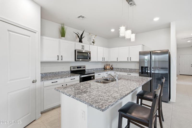 Listing details for 16664 Christy Dr #19027 W, Surprise, AZ 85388 : Beautifully designed rare single-level home on a desirable corner lot with a landscaped no maintenance back yard with no direct backyard neighbors. This newer 4-bedroom, 3-bath home features an open-concept layout. The spacious primary suite features an en-suite bathroom with walk in closet. The spacious kitchen includes a walk in pantry and granite countertops ideal for entertaining. Enjoy a finished 2-car garage with epoxy flooring. Located in the heart of Surprise, just minutes from the Prasada shopping center. This home is perfectly positioned with convenient access to the areas of best retail, dining, entertainment, and minutes away from the White Tank Mountain Regional Park.