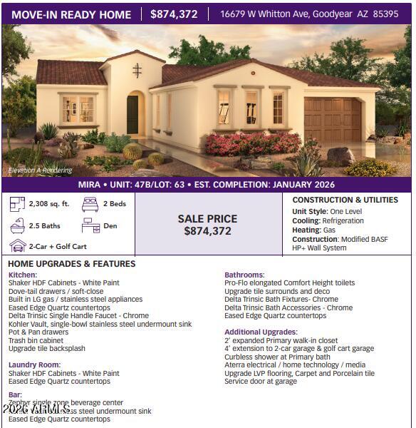 16679 Whitton Ave, Goodyear, AZ 85395 and is listed for sale at $874,372.00. This home was built in 2026, contains 2308 square feet of living space, and sits on a 0.23 acre lot. This residential home is priced at $378.84 per square foot.