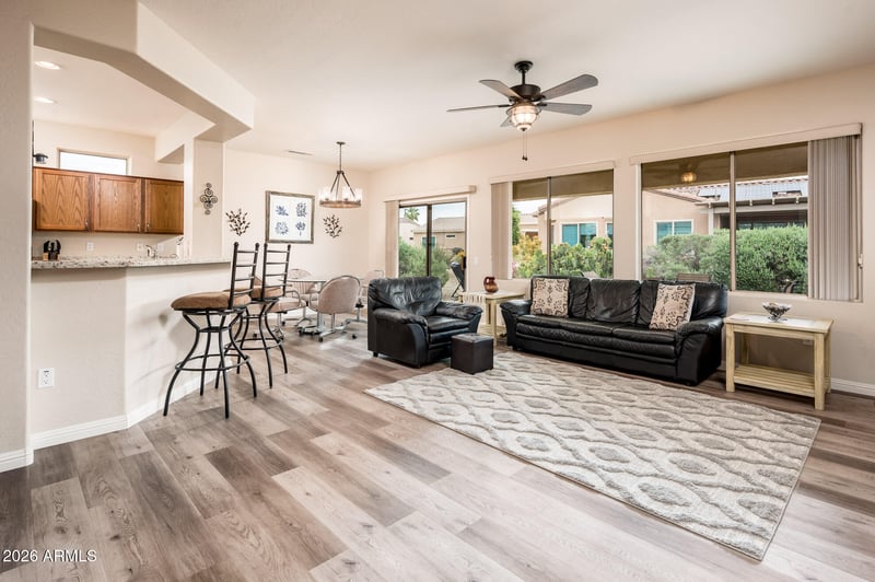 Listing details for 16710 Ibarra Ct, Surprise, AZ 85387 : Updated ''FURNISHED'' Azalea model in The Grand on a quiet cul-de-sac near Cimarron Center. Bright split floor plan with spacious great room and open kitchen designed for easy everyday living and entertaining. Primary suite features bay window upgrade and large walk-in closet. Recent updates include new flooring, granite countertops, 2023 HVAC, water heater, and BathFitter tub/shower in guest bath. Washer, dryer, and 2-car garage with extra storage included. Convenient pools, fitness center, walking paths, and community amenities.