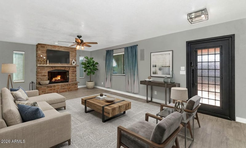 Listing details for 16710 Oxford Dr, Fountain Hills, AZ 85268 : Discover Your Fountain Hills Retreat with No HOA & OWNED SOLAR! Nestled on an elevated corner lot, this beautifully remodeled home captures everything that makes Fountain Hills living so special -- sweeping mountain views, mature desert landscaping, and the kind of indoor-outdoor lifestyle you've been dreaming of. Thoughtfully designed split floor plan offers warm tile flooring, a striking stone fireplace, and custom barn doors that add character throughout. Upgraded kitchen outfitted with custom cabinetry, quartz countertops, stainless steel appliances, a pantry, and a sunny eating area perfect for morning coffee. A separate formal dining room means you're always ready to host. The primary suite has a spa-inspired en-suite with dual sinks and a stunning custom glass shower. Flexible bonus rooms offer space for guests, a mother-in-law suite, or a teen hangout, whatever your life calls for. Step through the French doors and into your private backyard oasis. Whether you're entertaining under the stars or unwinding after a hike, the outdoor family room delivers -- complete with a stone fireplace, heated pool, spa, and storage shed.