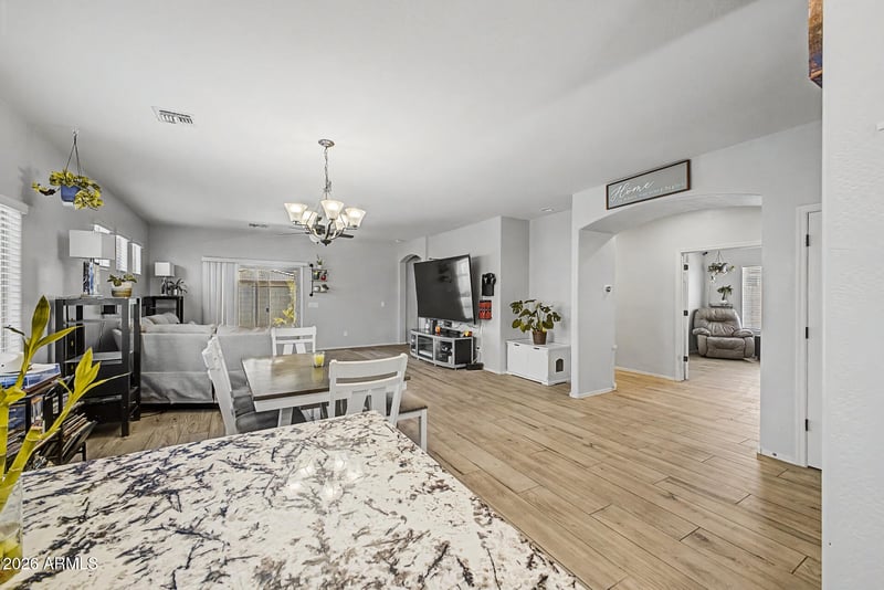 Listing details for 16719 Rowel Rd, Surprise, AZ 85387 : Desert Oasis Community, Built in 2021 this move-in ready home checks all the boxes featuring an RV gate, rare 4' garage extension, ADDITIONALLY ADDED insulation, and 9' ceilings that create a bright, open feel throughout. Offering 3 bedrooms plus a fully enclosed den (perfect for a home office or flex space) and 2 bathrooms, this layout is both functional and inviting.