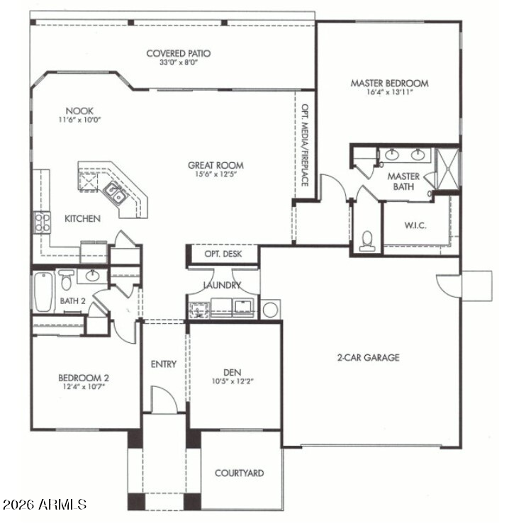 Listing details for 16768 180th Dr, Goodyear, AZ 85338 : Beautifully maintained and truly move-in ready, this inviting 2-bedroom, 2-bath home with a versatile den is designed for easy living and everyday enjoyment. Start your mornings on the charming front porch, coffee in hand, surrounded by attractive desert landscaping and peaceful neighborhood vibes. Inside, upgraded tile flooring carries you through the main living areas into a light-filled great room where large picture windows create an airy, welcoming atmosphere.