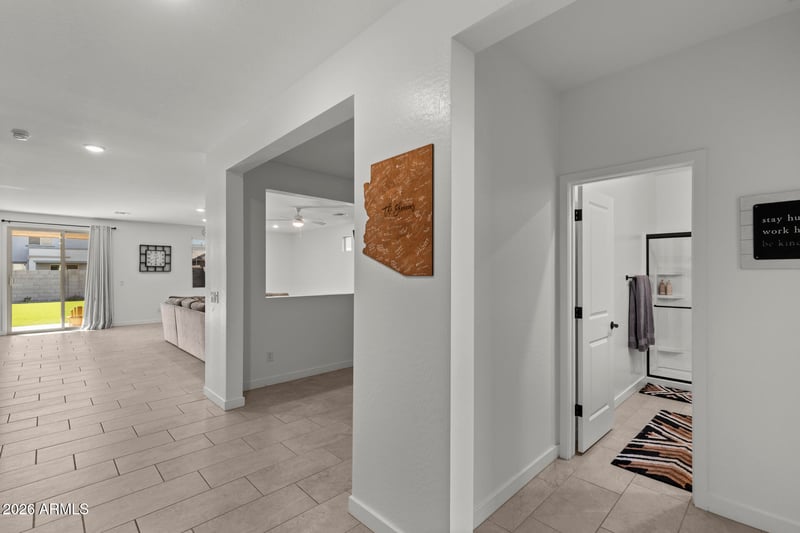 Listing details for 16837 Fetlock Trl, Surprise, AZ 85387 : Welcome to one of the largest floor plans in Sunrise community! This home features 5 bedrooms, 3 bathrooms, 3 car tandem garage and an oversized loft/bonus space! As you walk in you will be greeted with natural light, a guest bedroom and bathroom off the front door. As you continue in you will pass a formal dining or a bonus space that can be enclosed. Walking into the great room, you have a generous sized living room right off the gorgeous kitchen that is equipped with stainless steel appliances, a gas cooktop, granite countertops, a large pantry, sleek shaker cabinetry, a stylish tile backsplash, and an island with a breakfast bar. Upstairs you will find the primary bedroom with a lovely bathroom suite + large walk in closet. The remaining 3 bedrooms, bathroom and laundry room. Backyard is large with new turf, pavers and landscaping!