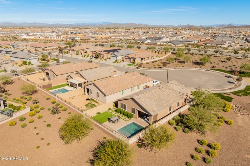 bedrooms, while the backyard showcases a private pool and open views, creating a peaceful Arizona retreat · Premium cul-de-sac lot