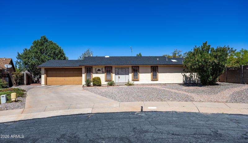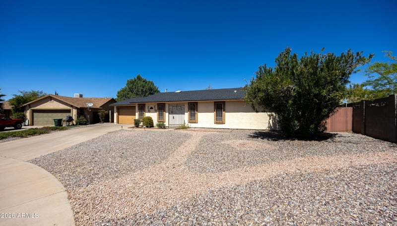 Listing details for 1691 Periwinkle Way, Sierra Vista, AZ 85635 : Prime cul-de-sac location in central Sierra Vista! This home is minutes from the mall, dining, trails, golf, and just 5 minutes to the base. Features include vaulted ceilings, 3 bedrooms, 2 baths, a 2-car garage, and an open dining/living layout. The primary suite offers a walk-in closet and private bath. Enjoy a peaceful, landscaped backyard. This move-in ready home is a must see!