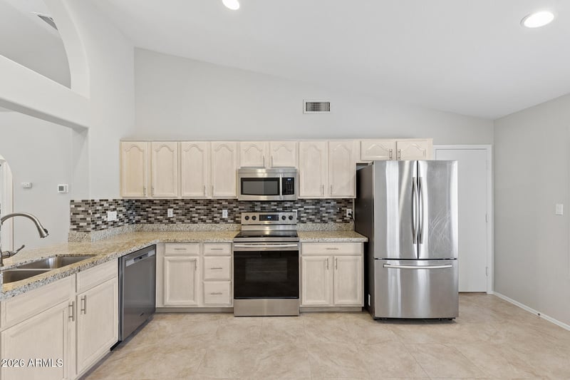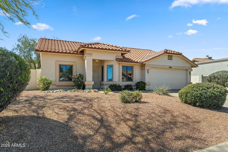 Listing details for 16913 De Anza Dr, Fountain Hills, AZ 85268 : Corner Lot Living in Fountain Hills! Spacious living & dining areas flow seamlessly together, highlighted by vaulted ceilings for a bright, open feel, a statement fireplace with mantel & tile flooring for low maintenance. The kitchen features granite countertops, stainless steel appliances including a new dishwasher, abundant pantry space & eat-in area surrounded by windows for natural light. The primary suite is generously sized with new LVP flooring & an ensuite offering dual vanities & a walk-in closet. Additional bedrooms & full bath are well-sized, plus an indoor laundry area for added convenience. The backyard showcases a large covered patio & open-air patio with room to customize. Centrally located with easy access to Fountain Hills Park, plus nearby shopping, dining & recreation!
