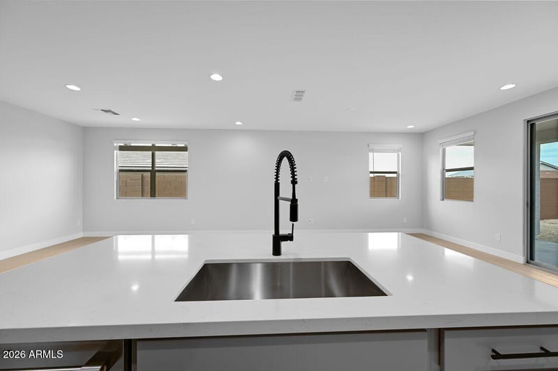 Listing details for 16922 Thurman Dr, Goodyear, AZ 85338 : Final Opportunity! New Construction - Ready Now! Built by America's Most Trusted Homebuilder. Welcome to the Sandstone at 16922 W Thurman Drive in Lucero Discovery Collection! Start on the inviting front porch, then step inside to a foyer and hall leading to a secondary bedroom, shared full bath, flex space, and laundry room. Nearby are two additional bedrooms with a shared bath. At the heart of the home, an open dining area, kitchen with island, and great room create an inviting space for gatherings, with outdoor living just beyond. The primary suite is a private retreat featuring a spa-inspired bath and walk-in closet. Additional Highlights Include: Flex room in place of bedroom 5, gourmet kitchen, 8' interior doors, and whole house blinds. MLS# 6915931