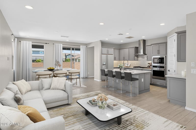 Listing details for 16934 Thurman Dr, Goodyear, AZ 85338 : What's Special: Final Opportunity | 3 Full Baths | Golf Course Community. New Construction - Ready Now! Built by America's Most Trusted Homebuilder. Welcome to the Sandstone at 16934 W Thurman Drive in Lucero Discovery! Enjoy a front porch, spacious foyer, open dining area, gourmet kitchen with island, and bright great room flowing into outdoor living. One wing has a bedroom, bath, flex space, and laundry; the other has two bedrooms, bath, and garage. The primary suite is a peaceful retreat. Additional Highlights include: gourmet kitchen, 8 ft interior doors, flex room, 36'' cabinets, pots and pans drawer, recycle center in kitchen and raised vanities at second bath. Virtually staged photos are for representative purposes only. MLS#6934479