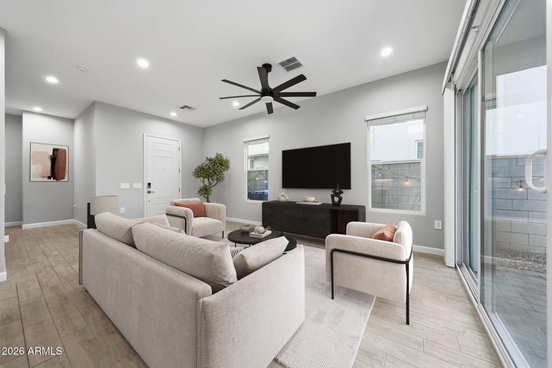 Listing details for 17048 50th Way, Scottsdale, AZ 85254 : Welcome to Arabella, a sought-after community in one of Arizona's most desirable zip codes—just minutes from Loop 101, Scottsdale Quarter, Kierland Commons, Desert Ridge Marketplace, and Paradise Valley dining and shopping. This highly desirable Little Rock floorplan offers 3 bedrooms, 2.5 bathrooms, a loft, and over 1,900 sq ft of thoughtfully designed living space. Built in 2022, the open-concept layout features plank flooring, abundant natural light, and a chef's kitchen with quartz countertops, white cabinetry, stainless steel appliances, and seamless indoor-outdoor flow. Enjoy low-maintenance outdoor living with a private yard, turf, and covered patio. Upstairs, the spacious primary suite features a glass walk-in shower and direct laundry access, while secondary bedrooms offer flexibility for guests or a home office. Additional highlights include 10' ceilings, 8' doors, smart home technology, soft-water pre-plumb, two-tone paint, plush bedroom carpeting, a 2-car garage, and access to a sparkling community pool. The Little Rock model truly stands out as one of the best floorplans in the neighborhood.