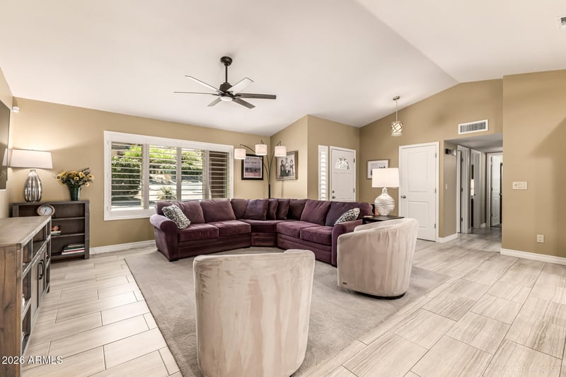 Listing details for 17108 Grande Blvd, Fountain Hills, AZ 85268 : Completely renovated and meticulously maintained home with an open-concept living area. The updated kitchen features soft-close alder wood cabinets, a large quartzite island, quartzite countertops, KitchenAid appliances, a Bosch dishwasher, and abundant storage. Enjoy energy efficiency with newer Low-E dual pane windows. The primary suite includes a beautifully updated bath with a custom tile walk-in shower. Outside offers newer exterior paint, low-maintenance landscaping, TuffShed storage, and a 15 ft. wide sliding RV gate with RV parking. No HOA or NPOA provides added flexibility and freedom. Act quick on this move in ready home!