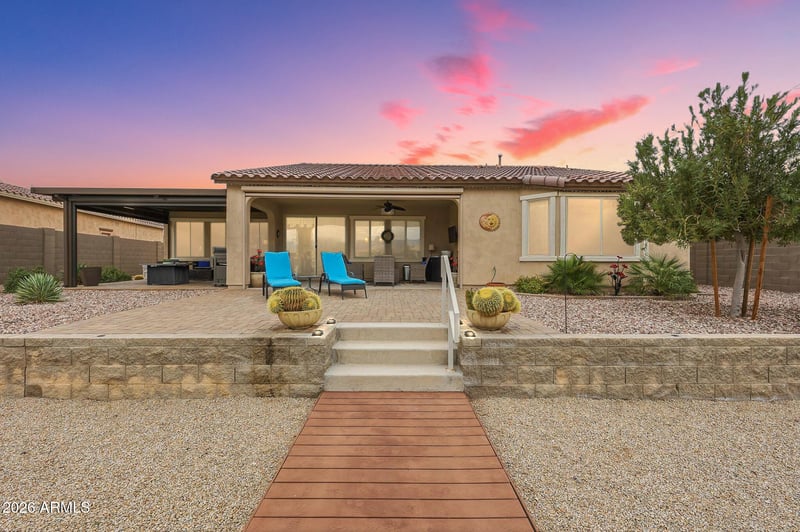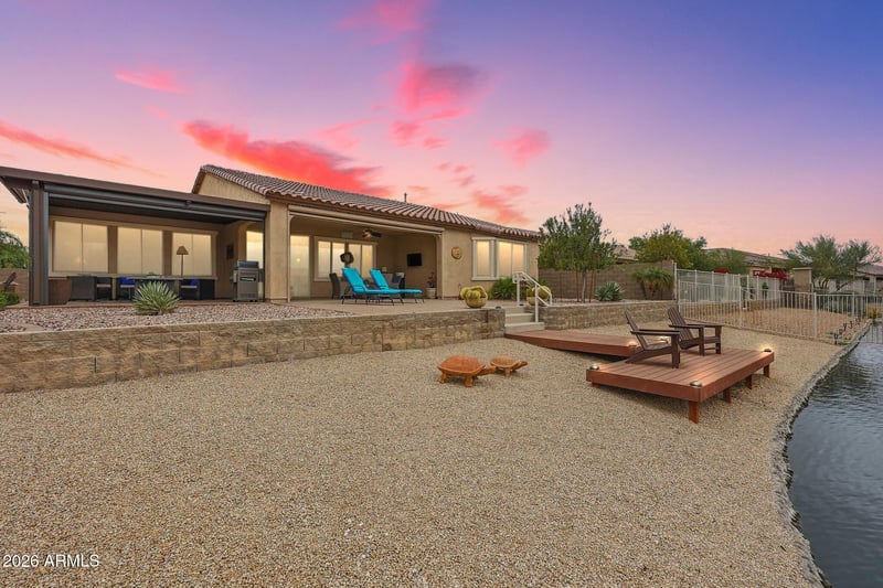 But the true showstopper lies beyond the doors - your very own Arizona oasis. Step out to an expanded paver patio where you'll soak in breathtaking waterfront views framed by the Estrella Mountains. Enjoy year-round comfort with mechanical sunshades that create the perfect balance of shade and privacy. The low-maintenance desert landscaping makes it easy to enjoy, whether you're a full-time or seasonal resident.