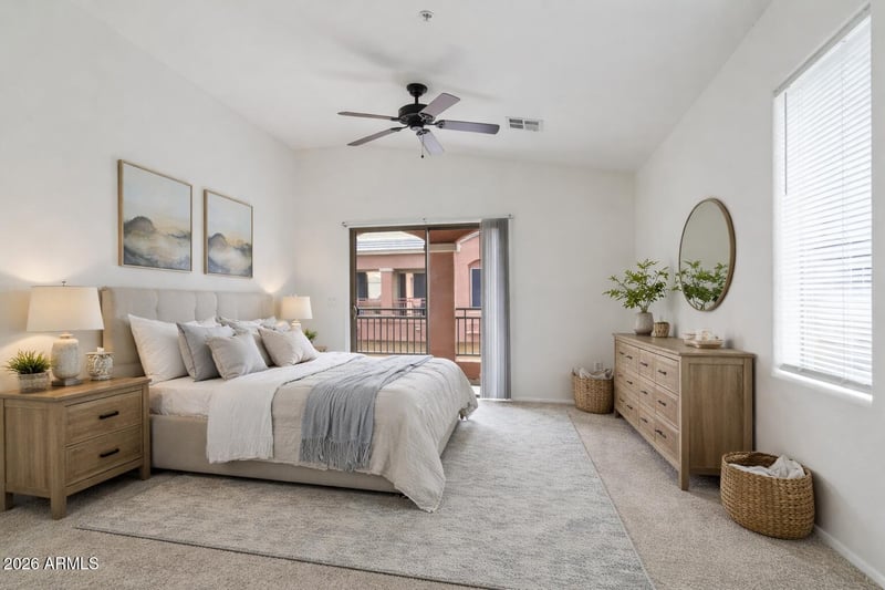Listing details for 17150 23rd St #219, Phoenix, AZ 85022 : Welcome to this beautifully maintained 2 bedroom, 2 bath condo that truly lives larger than its square footage. High ceilings and a spacious open floor plan create a bright and airy feeling throughout. Enjoy one of the quieter interior north/south-facing locations, with a light and bright south-facing balcony, perfect for relaxing or entertaining. The functional layout offers privacy between bedrooms, and the convenience of an upstairs laundry and an attached garage adds everyday ease. Set within a gated community featuring a sparkling pool and unbeatable freeway access, this prime location makes commuting and getting around the Valley a breeze. Freshly painted and move-in ready, this one stands out!