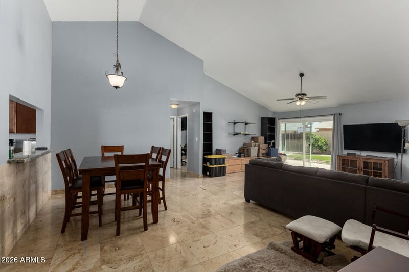 Listing details for 1719 Shawnee Dr, Chandler, AZ 85224 : This charming 3-bedroom, 2-bath residence is the one you've been searching for! You'll be delighted by the spacious feel of the living room, featuring soaring vaulted ceilings, a soothing palette, stone-tile flooring, and an inviting fireplace for relaxing evenings. The gourmet kitchen comes with granite counters, ample wood cabinetry with crown moulding, stainless steel appliances, a pantry, and a serving window with a breakfast bar. The primary bedroom includes a private bathroom with dual sinks and a walk-in closet for an organized wardrobe. Enjoy peaceful afternoons in the backyard, which offers a covered patio, artificial turf, an RV gate leading to the alley, and ample space for outdoor relaxation. Don't miss out on this fantastic opportunity!