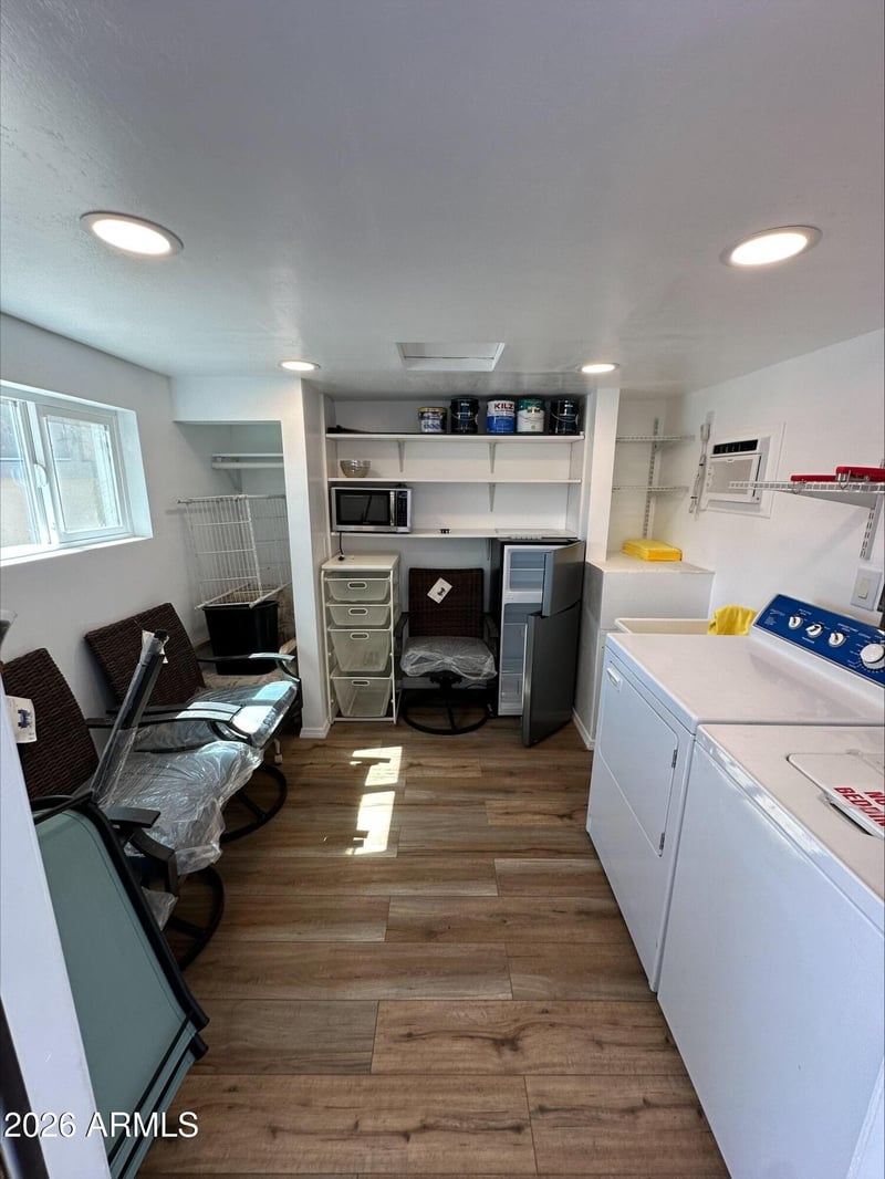 Listing details for 17200 Bell Rd #1104, Surprise, AZ 85374 : This spacious RV lot offers a 14'6'' wide open space, perfect for any RV size. The recently renovated shed includes a washer, dryer, and mini fridge, with hot and cold water line for outside ready for an outside kitchen area—a perfect blend of functionality and convenience. Enjoy some golf course views and take advantage of the partial awning for added shade. Located in a vibrant community that loves to celebrate the holidays, this lot is perfect for those looking for a seasonal retreat or a year-round home. Don't miss out on this incredible opportunity!