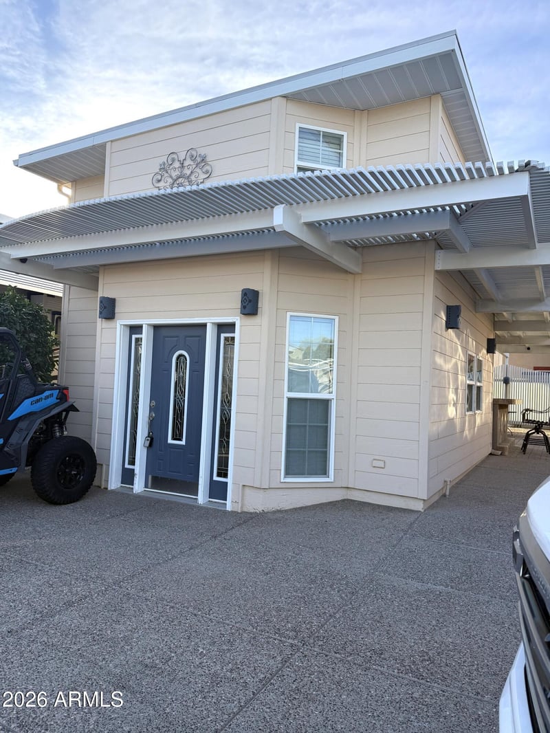 Park your Class A motorhome beside this 972 sq ft site built north facing home. Every attention to detail