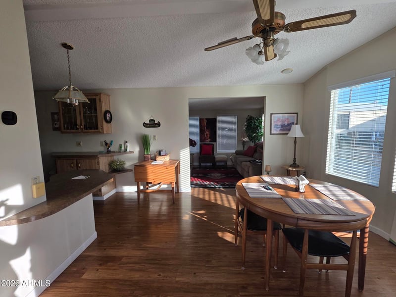 Listing details for 17200 Bell Rd #2169, Surprise, AZ 85374 : This rare 2‑bedroom, 2‑bathroom home offers a spacious living room and a warm, inviting atmosphere. Located in the desirable 55+ Happy Trails RV Resort, it's one of the few communities where you own the land your home sits on, providing lasting value and peace of mind. The home is fully furnished and move‑in ready, with a newer heat pump, a new rolled roof added in December 2025, and a golf cart with new batteries installed in November 2025. Water, sewer and garbage is included with the HOA. With a guard‑gated entrance, abundant activities, friendly neighbors, nearby shopping and restaurants, and easy highway access, this community feels welcoming and secure.