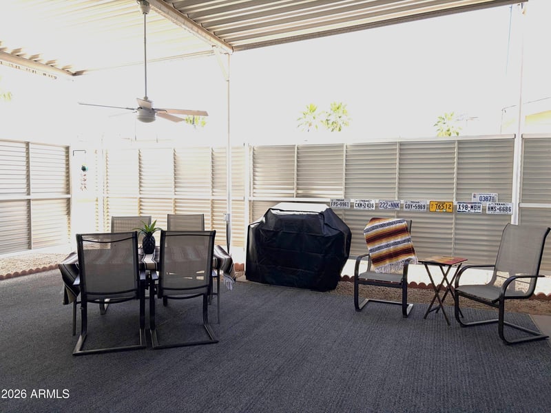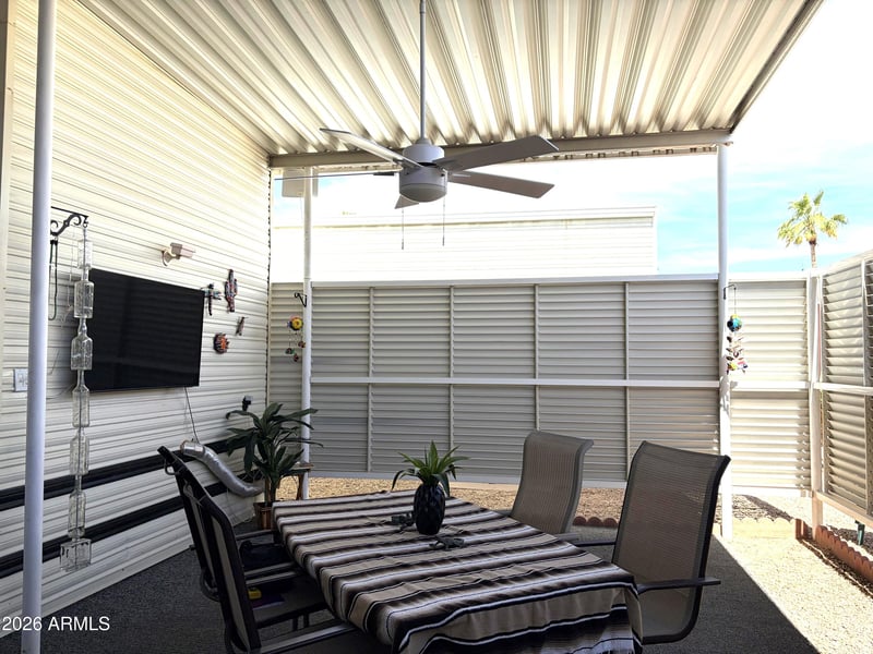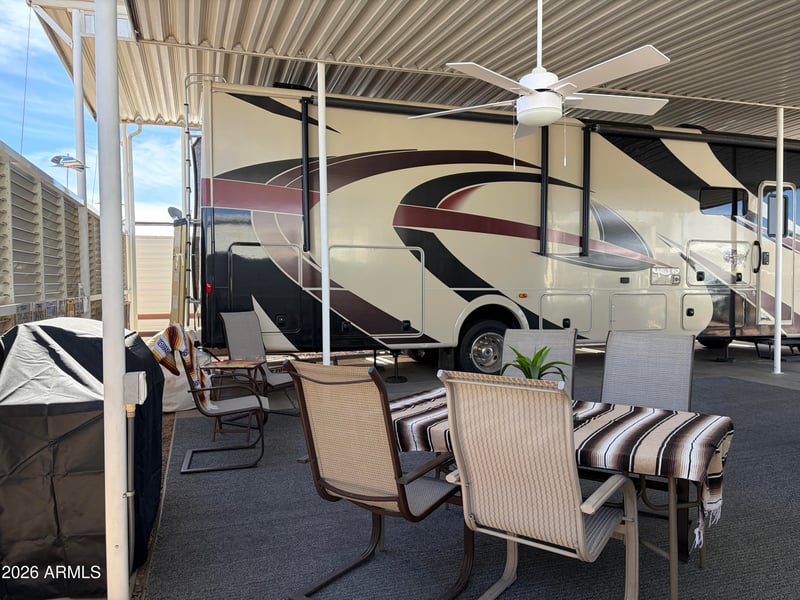 Listing details for 17200 Bell Rd #567, Surprise, AZ 85374 : Fully Covered RV Lot in the Gated, 55+ Community of Happy Trails. Attached Casita/Shed features washer/dryer, sink and toilet and a pull-down ladder that accesses the upper loft/storage area. Sprawling covered outdoor living space for entertaining or just relaxing and enjoying the lovely Arizona climate. Happy Trails Resort Community has loads of activities, including- Pickleball, Golf, Swimming Pools & Spas, Billiards, Fitness Center, Craft Clubs, a Restaurant and a large Dog Park. Low HOA fees cover water, sewer and garbage.