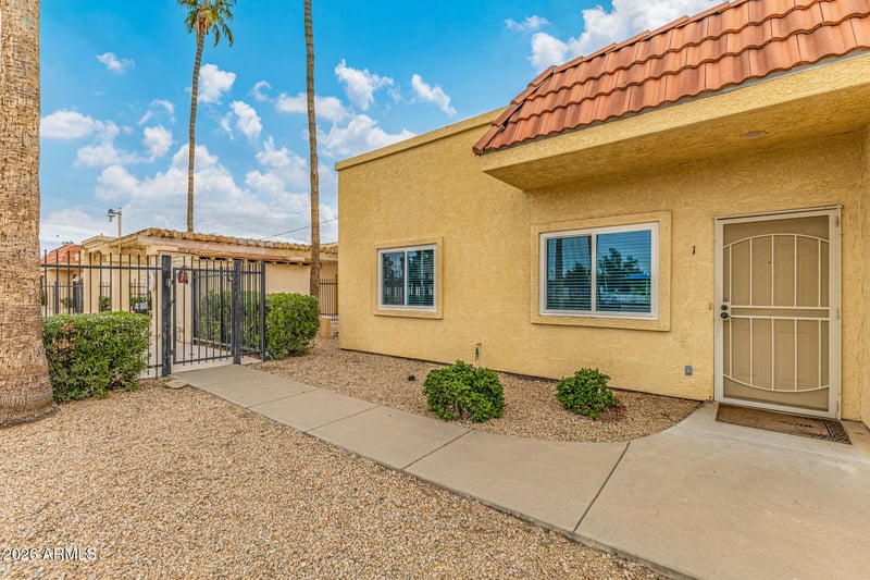 Listing details for 17201 16th Dr #1, Phoenix, AZ 85023 : Beautifully updated end-unit 1-bedroom, 1-bath residence offering 672 sq. ft. of efficient and stylish living, just steps from the community pool. This home features sleek tile flooring throughout, soaring 9 ft. ceilings, and upgraded dual-pane windows with UV tint for enhanced comfort and energy savings. Enjoy a modern kitchen equipped with stainless steel appliances, as well as a brand-new, energy-efficient HVAC system that keeps electric costs impressively low. The spacious full bath showcases updated tile in the shower and a gorgeous contemporary vanity. A new in-unit washer and dryer add everyday convenience. Outside, a charming tiled patio provides a cozy seating area perfect for unwinding. As an end unit, the home offers added privacy while maintaining quick access to community amenities. Located close to major shopping, dining, and freeway routes, this property delivers exceptional convenience and connectivity. A move-in-ready opportunity ideal for first-time buyers, downsizers, or investors seeking a highly marketable home.