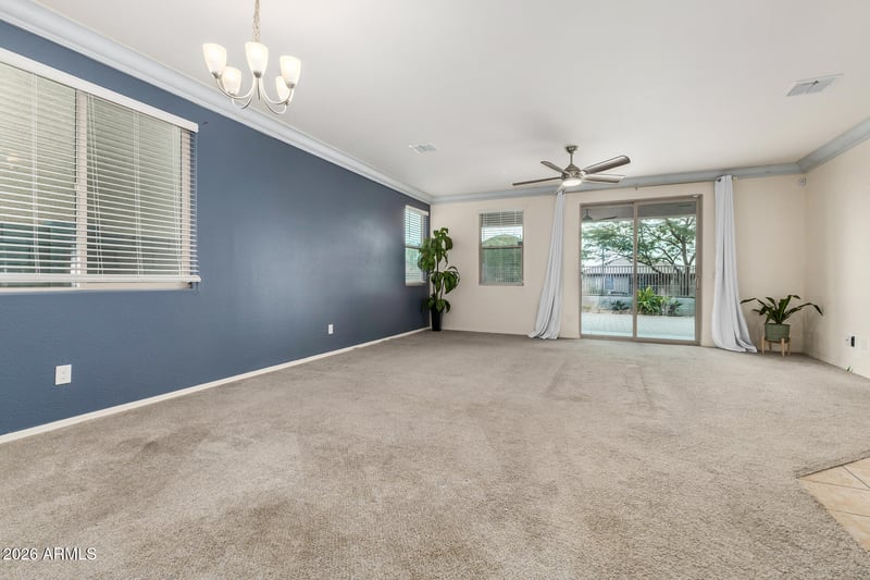 The spacious primary suite is tucked away for privacy, while the secondary bedrooms are thoughtfully positioned on the opposite side of the home. Step outside to a low-maintenance backyard with a see-through fence, ideal for relaxing, entertaining, or enjoying peaceful desert views.