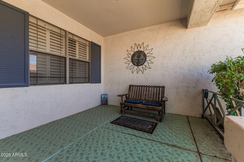 Listing details for 17233 Thornberry Dr, Surprise, AZ 85374 : Welcome home to the AZ Traditions adult community!! This 2bd/2b + den is a treasure. Den is great for crafts, as an office, or for visiting guests. Enjoy the cozy courtyard as you read or drink your morning coffee. Relax in the desert landscaped backyard under the extended covered patio. NO BACK NEIGHBORS provides privacy and tranquility. The 2 car garage has golf cart parking, storage cabinets & workbench. Plantation shutters in main living areas. Newer HVAC and water heater 2023. Enjoy all the amenities Arizona Traditions has to offer, club house, swimming, golfing, walking trails, and more.