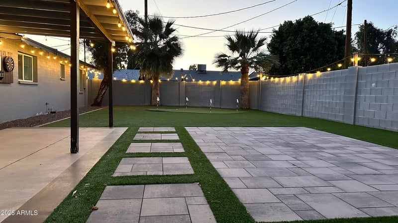 Listing details for 1726 Royal Palm Rd, Phoenix, AZ 85021 : NEW PRICE! Fully renovated 4-bedroom home and the best value in Royal Oaks. While nearby homes still need updates, this turnkey home is move-in ready today. The kitchen anchors the open floor plan with an expansive waterfall-edge island flowing into the great room and classic brick fireplace, perfect for entertaining. The backyard is a standout with a custom putting green, synthetic turf, covered patio, and professional landscape lighting that creates a private retreat at twilight. Beautifully renovated baths, sleek finishes, and updated systems throughout. Quiet interior North/South lot in a prime North Central location. (Some photos contain virtual staging for illustrative purposes.)