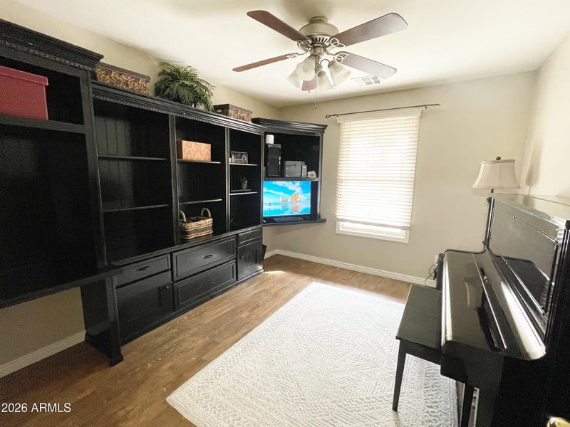 Listing details for 17263 Ironwood St, Surprise, AZ 85388 : Welcome to this beautifully maintained home in the highly sought-after Surprise Farms community, perfectly situated on a prime corner lot facing a large greenbelt. This spacious home offers 4 bedrooms plus a dedicated home office, 3 full bathrooms, and 2,285 square feet of thoughtfully designed living space.