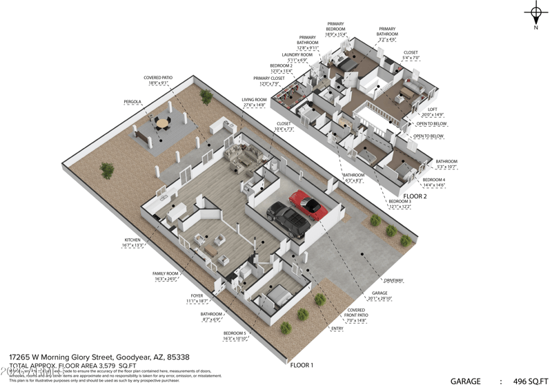 17265 Morning Glory St, Goodyear, AZ 85338 and is listed for sale at $589,990.00. This home was built in 2006, contains 3579 square feet of living space, and sits on a 0.16 acre lot. This residential home is priced at $164.85 per square foot.