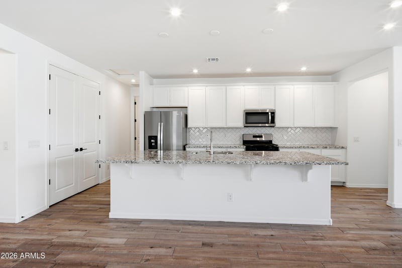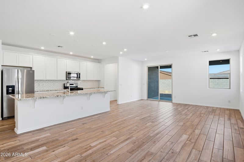 Listing details for 17276 Sunward Dr, Goodyear, AZ 85338 : Welcome to our beautiful Shiloh home, a single-family home located in the heart of Estrella Mountain Ranch. This stunning new construction home features 4 beds, 2.5 baths, offering ample space for comfortable living. The 1930 sq ft layout includes an open great room, a modern kitchen with SS appliances including a refrigerator, granite counters, and 42'' upper cabinets. The primary suite is spacious, with a separate tub and shower in the bath, while the additional bedrooms provide plenty of room for family or guests. Additional highlights include plank style tile throughout, 2 panel 8' interior doors, and tile backsplash in the kitchen. Step outside to enjoy the views of the Estrella Mountains, perfect for entertaining or relaxing.