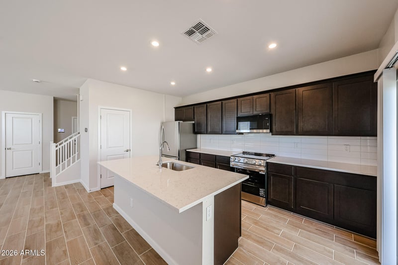 Listing details for 17324 Villa Chula Ln, Surprise, AZ 85387 : Discover Your Dream Home in the Ridge Collection at North Copper Canyon. The impeccable Iris plan, a stunning three-bedroom home designed for modern living. Step inside to experience the spacious contemporary main-floor layout with soaring 9' ceilings that enhance the open feel. The heart of the home is the striking kitchen, complete with an inviting island and generous walk-in pantry, seamlessly overlooking the dining area and airy great roomâ€''perfect for entertaining and everyday life.