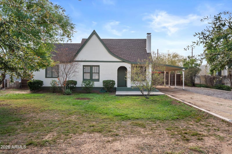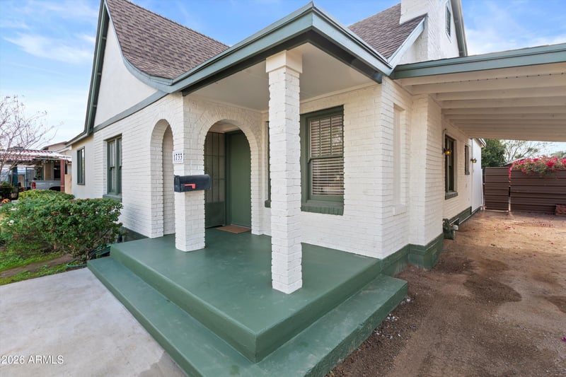 Listing details for 1733 Harvard St, Phoenix, AZ 85006 : If you've been waiting for a truly special 1920s Tudor in Central Phoenix, this home delivers. Inside, refinished wood floors set the tone, and the living room is warm and inviting with a wood-burning fireplace and abundant natural light throughout. The eat-in kitchen is modern and functional, featuring a large island that works well for everyday living and casual gatherings. The primary bedroom includes an attached office space, ideal for working from home or creating a quiet retreat that still feels connected to the rest of the home. The second bedroom is light and bright, and the bathroom maintains its original character with charming penny tile. Outside, the oversized lot is zoned R3 and offers endless potential, complete with a carport and ample outdoor space. Major improvements have already been completed, including new exterior paint, new plumbing, new electrical, and a new roof. An updated home with historic charm in a prime Central Phoenix location is a rare find, and this one stands out for all the right reasons.