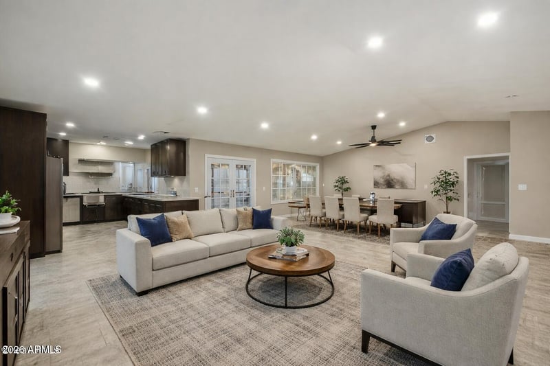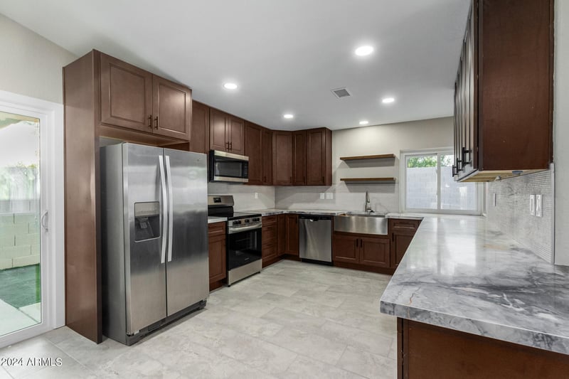 Listing details for 1734 Banff Ln, Phoenix, AZ 85023 : Discover the allure of this turnkey single-story residence with no HOA! Double doors reveal an immaculately designed open layout enhanced with vaulted ceilings, recessed lighting t/out, plantation shutters, a bay window, calming color schemes, and stylish tile flooring. The heart of this home is the impeccable kitchen, outfitted with sleek stainless steel appliances, granite counters, tile backsplash, and chocolate brown cabinetry. The primary retreat is a sanctuary, highlighting a double-door entry, a walk-in closet, a sophisticated ensuite with dual sinks, a step-in glass shower, and outdoor access. The entertainer's backyard invites you to relax and have fun with a covered patio, artificial turf, and a refreshing pool ready to enjoy. This gem is move-in ready!