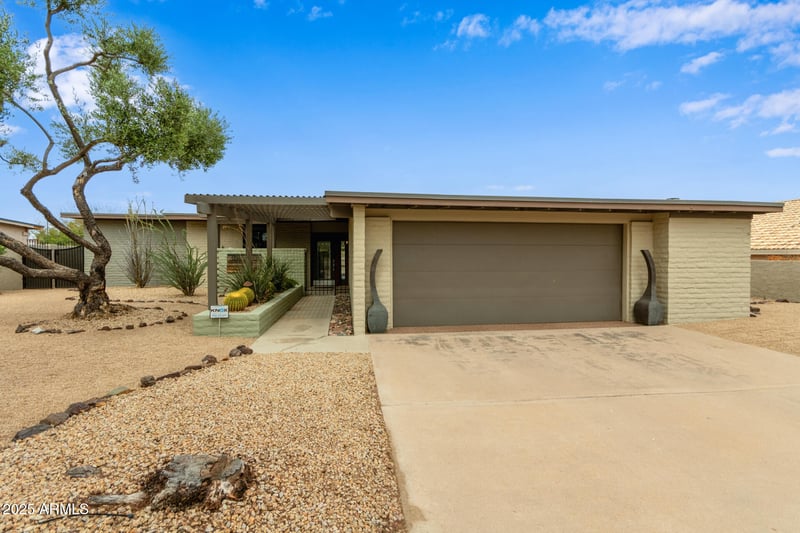 Listing details for 17346 Oro Grande Dr, Fountain Hills, AZ 85268 : Architectural gem! Frank Lloyd Wright design. This 2070 sq ft mid-century modern home boasts exposed wood beams, high ceilings, and iconic slump block walls. Enjoy sweeping Four Peaks views, natural light from three skylights, and privacy from mature vegetation. A newer AC (2023) with an electrostatic air filter (2024) and a Kyko foam roof (2019) with 10 years left on the warranty ensures year-round comfort. The kitchen features quartz countertops and opens to a functional layout with stunning mountain views. Arizona/Lanai room offers space to relax or entertain. The backyard retreat includes a spa jacuzzi, and the oversized garage has a new floor coating. Whole-house water softener and reverse osmosis system provide high-quality water. Don't miss out on this one!