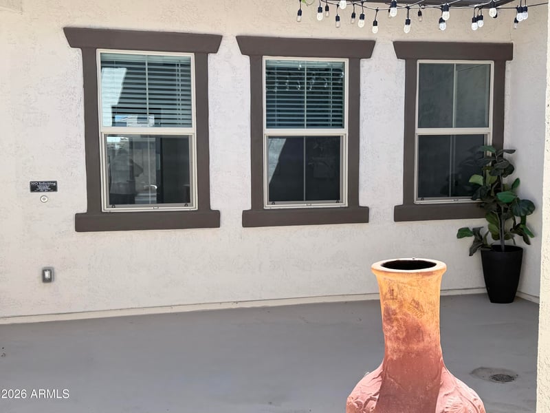 Listing details for 17417 Surrey Dr, Surprise, AZ 85388 : This almost-new 4 bedroom, 3 bath home checks every box for comfort, style, and entertaining. Inside, you'll find open floor plan with bonus living room/office space, wood-look tile floors that run through the main living areas, adding warmth and durability. The chef's kitchen features a large island with plenty of seating, built in oven and microwave, generous counter space, and room to gather. Flexible layout with a dedicated teen room that's perfect as a game room, media space, or homework zone. The backyard is designed for year-round enjoyment with a heated sparkling pool and spa, built-in BBQ and sink, cooling misters, and and a wired outdoor entertainment wall ready for game days or movie nights. Property is wired for security cameras.Stylish & move-in ready, more pics to come.