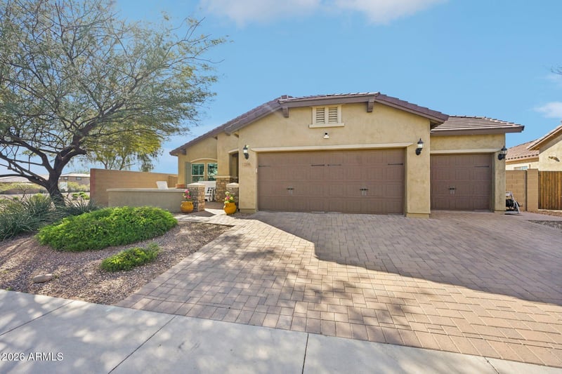 Listing details for 17419 Oberlin Way, Surprise, AZ 85387 : Beautifully maintained 3-bedroom home plus a versatile den, featuring a spacious 3-car garage and fully paid-off solar for major energy savings. The stunning kitchen offers ample cabinetry, generous counter space, and an open layout perfect for entertaining. The functional floor plan provides comfortable living with great natural light throughout. Step outside to your private backyard retreat with a sparkling pool, ideal for Arizona summers and weekend gatherings. Located in a desirable Surprise neighborhood near parks, schools, and shopping. Move-in ready with big-ticket upgrades already done.