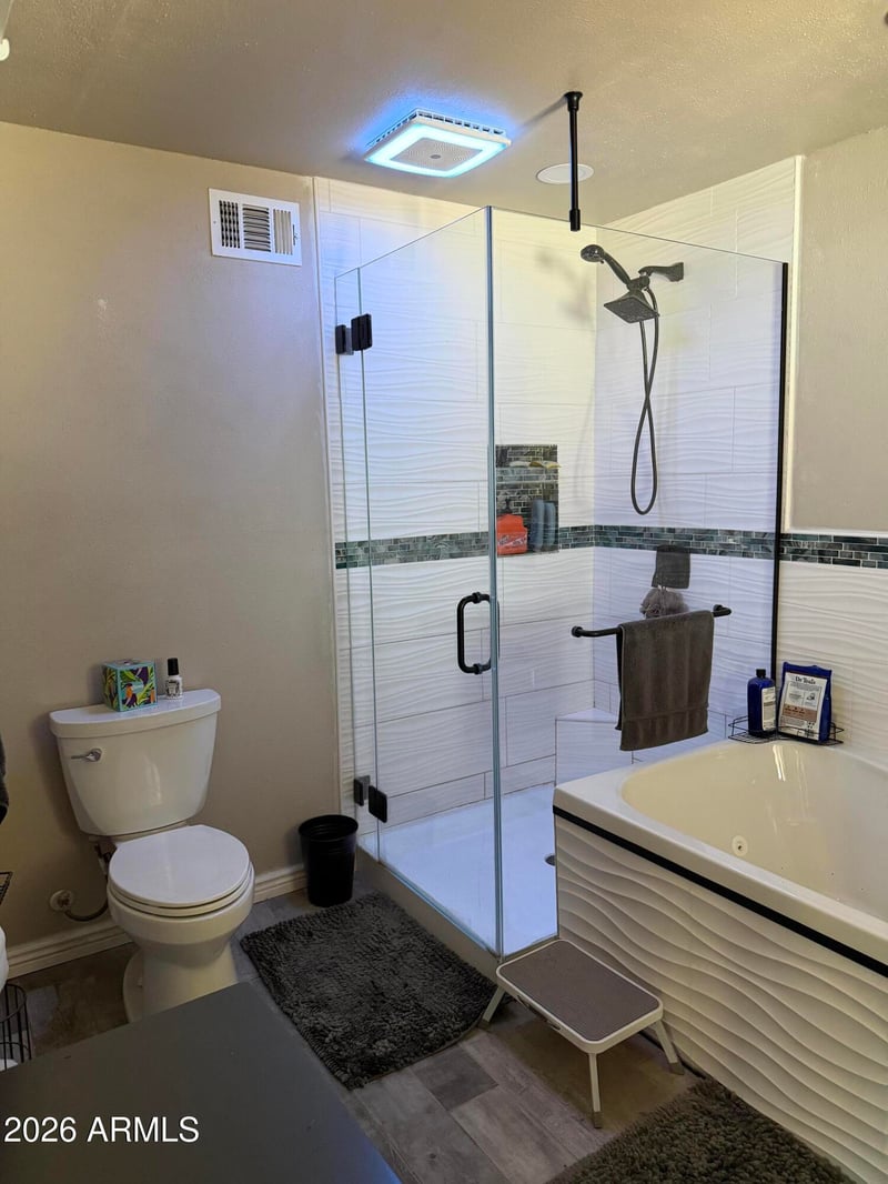 Listing details for 17428 36th Dr, Glendale, AZ 85308 : A home that will have it all and a surprise! This 4 bedroom, 2 full baths, living and dinning room off the remodeled kitchen for great entertaining. Island kitchen, new stainless appliances with refrigerator, an open family room, fireplace for those family get togethers. Large primary with a separate water jet tub, free standing shower with led lights/speaker for a spa like experience. From newer flooring, updated kitchen, baths, roof, a/c heat, water tank to your outdoor pool and newer pump and plumbing, pebble tec and tile, sandy beach area. The best is yet to come for a Mechanics or hobbyist dream building with hydraulic lift pully, shelving and storage. Two main doors for vehicles and a side door. Let's not forget the RV Gate and parking area, total 5 car garage space! Cul de sac!