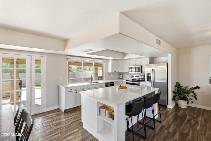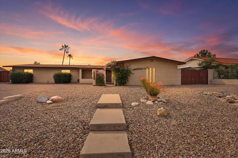 Listing details for 17431 Caliente Dr, Fountain Hills, AZ 85268 : Bask in dramatic desert vistas at this beautifully updated 3-bedroom, 2-bath retreat in Fountain Hills with sweeping views of the McDowell Mountains and iconic Four Peaks. Inside, abundant natural light and a neutral palette highlight thoughtful updates including fresh paint, new flooring and a custom entertainment center. The re-imagined kitchen features a large quartz island, expansive quartz counters, updated cabinetry and modern appliances, while a new high-efficiency HVAC system adds year-round comfort. The backyard offers rare privacy backing to a natural desert wash with no direct rear neighbors and beautiful year-round greenery. Enjoy a sparkling pool, low-maintenance synthetic turf and a resurfaced patio perfect for relaxing or entertaining while taking in the surrounding mountain views. An oversized two-car garage includes multiple storage rooms and a built-in workbench, providing excellent space for projects and gear. With its blend of modern updates, sweeping mountain views, rare privacy and inviting outdoor spaces, this Fountain Hills gem delivers Arizona living at its finest.