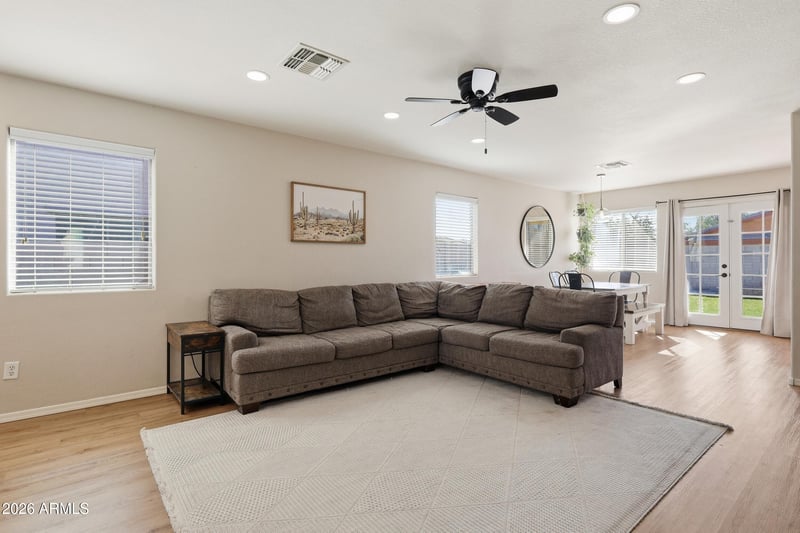 Listing details for 17449 Calavar Rd, Surprise, AZ 85388 : Welcome to this inviting home in the Sierra Montana community, ideal for first-time buyers or families seeking comfort, functionality, and value. The bright, open layout features updated flooring throughout and abundant natural light, creating a fresh, modern feel. The main living areas flow seamlessly into the kitchen, perfect for everyday living and entertaining. A leased solar system adds energy efficiency with a fixed low monthly payment and no annual escalator, great for budget-conscious buyers. Enjoy a versatile backyard with shell stone pavers designed to stay cooler in the Arizona heat. Conveniently located near shopping, dining, parks, and major roadways.