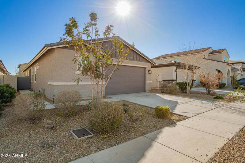 Listing details for 17449 Patrick Ln, Surprise, AZ 85387 : WELL BELOW COMPS + BUILDER PRICING! This thoughtfully designed residence offers 3 bedrooms, 2 bathrooms, PLUS a versatile den ideal for a home office or flex space or converted bedroom. The bright open-concept layout features tile flooring in the main living areas, neutral finishes, and abundant natural light. The kitchen includes granite countertops, a tile backsplash, stainless steel appliances, a pantry, & island overlooking dining and living areas. The primary suite offers LARGE walk-in closet & dual vanities. Purchase with value instead of financing your own incentives with a higher price with the builder! An opportunity for the wise buyer looking for long term value and savings + unique lot positioning with no immediate house across the street. Community Pool, Parks, & SO MUCH MORE!