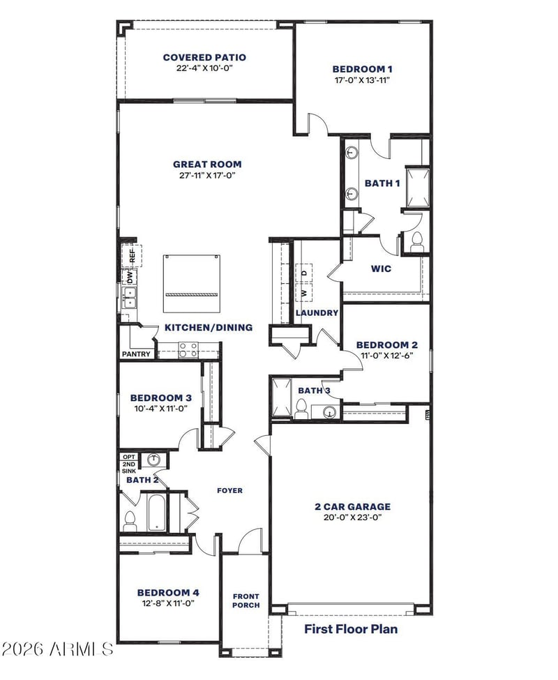Listing details for 17470 Illini St, Goodyear, AZ 85338 : Now Selling! Welcome to our newest community in Goodyear, offering an exceptional blend of lifestyle, convenience and value! No CFDS either! The thoughtfully designed community features greenbelts, volleyball, playgrounds, and walking paths throughout! Our popular ''Tapatio'' plan features 4 bedrooms, 3 bathrooms and a 2-car garage. Designer selected finishes include Carrara Quartz countertops in Kitchen and Baths, Satin Nickel cabinet hardware, SS appliances, 9' flat ceilings, Gas cooking, and tankless Gas Hot Water Heater! This beautiful home will feature 8' doors, Pre-Wire for EV Charging in the garage, a full Smart Home System, and Pre-Plumbing for Soft Water Loop. This home will be move-in-ready in July!