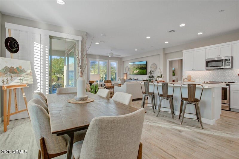 Listing details for 17716 Bismark Lake Ct, Rio Verde, AZ 85263 : SPECTECULAR VIEWS & CORNER HOMESITE! This BEAUTIFULLY UPGRADED Resort Collection Home with covered private terrace in the heart of coveted Trilogy at Verde River exemplifies classic Arizona Living! Spacious, OPEN yet efficient floor plan features 2 beds/ 2 baths and a separate smart space desk area in the great room. The unique location is adjacent to NATURAL OPEN SPACE overlooking the LAKE and TONTO NATIONAL MOUNTAINS for seamless indoor/outdoor living. Elegant finishes throughout! Kitchen offers gourmet appliances, upgraded cabinets and sleek countertops. This stunning home offers upgraded wood look tile flooring, custom shutters and a lot more. The new interior is bright and features today's favorite finishes. Trilogy at Verde River offers upscale Resort living at its finest and the very best of all possible worlds, close to the conveniences of affluent North Scottsdale, yet secreted within the pristine privacy of the Sonoran Desert.