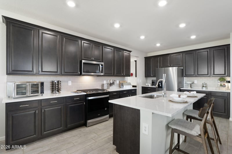 Listing details for 17765 Superior Ave, Goodyear, AZ 85338 : SUPERIOR LIVING on SUPERIOR AVE! Be WOWED by your own EXPANSIVE, NEARLY .4 ACRE LOT! This ideal, SINGLE-STORY residence, BUILT IN 2024 situated in the CUL-DE-SAC provides no through traffic and Lives LARGE with an open concept floor plan and spacious FIELD-LIKE BACKYARD featuring a FULLY FENCED 1,600 SQ FT DOG RUN and ample room for POTENTIAL POOL, SPORTS COURT, EXTENDED PATIOR OR POTENTIAL CASITA! The opportunity is limitless! Welcomed by 9 ft ceilings throughout, the oversized great room, and chef's dream kitchen features a large island with quartz countertops, the full stainless steel appliance package is included and a favorable GAS STOVE. Plus, a TRUE PANTRY! Appreciate the separate dining room, and dedicated OFFICE/DEN with POTENTIAL FOR 4TH BEDROOM, and the primary suite sanctuary with DUAL VANITIES, and a massive WALK-IN CLOSET. Each secondary bedroom features its OWN EN-SUITE BATHROOM which is a rare find! The separate laundry room with DROP ZONE makes daily living effortless.