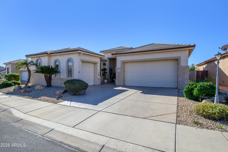 Listing details for 17783 Addie Ln, Surprise, AZ 85374 : This is the ideal Az home w/ the perfect balance of indoor/outdoor living & entertainimg.This model is one of only 2 w/ a half bath allowing the option for 2 private ensuites. A NEW ROOF, NEWER HVAC, all new insulation, & prepaid solar is energy efficent in AZ. The kitchen features s/s/ appliances, upgraded cabinets, granite ctrtops, a walk-in pantry. The dining area can accomodate a table for 12! The fun wet bar has a wine cooler & glass front cabinets. What a backyard! Complete w/ a sparkling heated pool & spa,(NEW HEATER), built in fireplace & BBQ, overhead patio heaters for the cool winter nights, retractable shades & awnings, & plenty of room for family & friends.