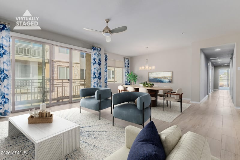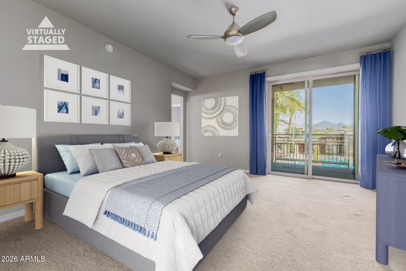 Listing details for 17850 68th St #2129, Phoenix, AZ 85054 : This highly upgraded North Scottsdale gated condominium offers ONE LEVEL LIVING w/ the perfect blend of luxury, comfort & convenience. Exquisite residence offers effortless living w/ elevator access directly to your second floor retreat w/ no one below living below!! 2 balconies invite you to indulge in serene vistas-one overlooking lush green space & the other off the primary suite, capturing sparking pool views. Step inside to discover a light-filled, open concept layout appointed w/ designer finishes. Tile floors flow thru the main living spaces, while plush carpeting lends warmth to the 3 bedrooms. Gourmet kitchen featuring SS appliances, quartz counters, designer backsplash, custom cabinetry, breakfast bar and soft close drawers w/ pull-out shelving. Oversized, extended 2 c garage w/ epoxy flooring provides exceptional storage space. A spacious laundry room also has abundant storage to enhance everyday ease of living. With 3 true bedrooms-a rare find in this community-there is ample space for guests, a home office or maybe a workshop! Perfectly situated just minutes from Scottsdale Quarter, Kierland Commons, Desert Ridge and City North, you'll enjoy lots of shopping, dining and entertainment-all while savoring the tranquility of your private retreat. Abundant natural light fills the home w/o harsh direct sunlight, ensuring year round comfort and remarkably low utility costs. This is more than a home-It's a lifestyle! Come experience the elegance, convenience and refinement that define North Scottsdale living!!!
