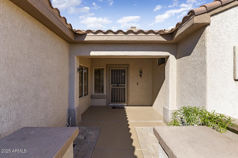 Listing details for 17850 Navarro Ct, Surprise, AZ 85374 : Tucked away on a peaceful cul-de-sac lot, this charming Verde model offers the perfect blend of comfort and convenience. Enjoy a private backyard retreat with a built-in BBQ, knee wall, and extended patio—ideal for Arizona evenings! Inside, you'll find cherry cabinets, tile countertops, new paint, and a newer Whirlpool stainless fridge, plantation shutters too! The garage is spotless with epoxy flooring and storage cabinets. Plenty of savings with Tesla solar and a newer HVAC for year-round comfort.