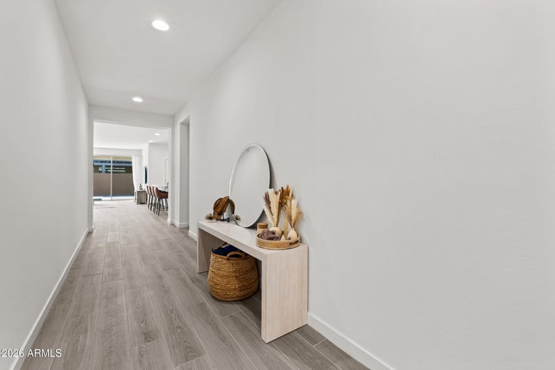 Listing details for 17869 Indigo Brush Rd, Goodyear, AZ 85338 : Welcome to this beautifully upgraded 2023 home in the highly desirable Estrella community in Goodyear, offering 3 bedrooms, 2 bathrooms, and 2,122 square feet of thoughtfully designed living space that blends modern design with everyday comfort. Step inside to an open-concept floor plan filled with natural light, soaring ceilings, and neutral finishes. The chef's kitchen showcases white shaker cabinetry, sleek quartz countertops, a designer tile backsplash, stainless steel appliances, and a large island ideal for entertaining. The spacious primary suite serves as a true retreat with a spa-inspired bath featuring a soaking tub, separate shower, dual sinks, and a generous walk-in closet with direct access to the laundry room for added convenience. Move-in ready upgrades include a professionally installed hardwired EV charger in the garage, reverse osmosis drinking water system at the kitchen sink connected to the refrigerator line, and like-new washer and dryer (just over one year old) included in the sale. The backyard is designed for easy outdoor living with a gas BBQ stub and low-maintenance space ready for personalization, while interior finishes feature wood-look plank tile throughout the main living areas, modern finishes, smart-home readiness, and nearly new construction with all major appliances approximately one to two years old.